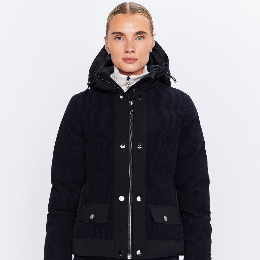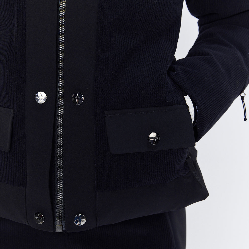 Jackans design har en tidlös silhuett med dekorativa knappar och ficklock som förstärker det sofistikerade uttrycket. Cordstrukturen ger ett distinkt utseende, samtidigt som materialet i 8848 Altitude Harlow Cord Jacket är noga utvalt för att fungera optimalt i skidmiljö.